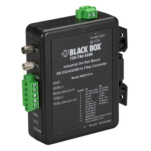 MED101A: Industrial DIN Rail RS-232/V.24/RS-422/RS-485 <-> Multimode Fibre Driver