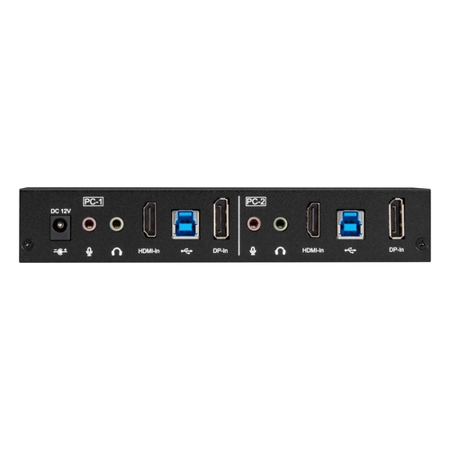 Control two HDMI/DP computers from a single set of keyboard, mouse, audio and latest USB-peripherals.